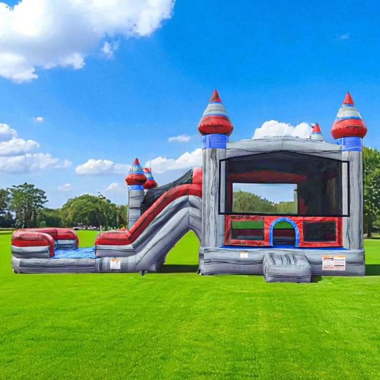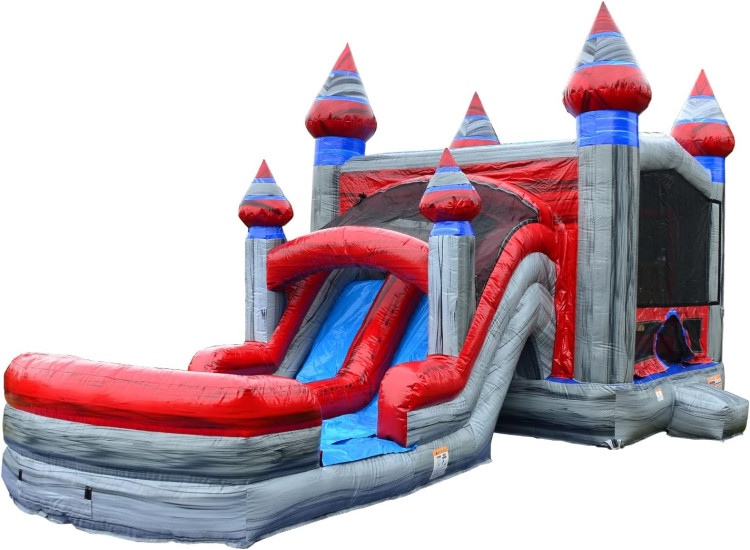 Get ready for an incredible adventure with our Titanium Double Lane Combo! This amazing inflatable ride can be used wet or dry, and features two spacious lanes for double the fun. Climb up the side of this impressive slide and then take a deep breath before taking the plunge down the thrilling slide. You'll speed down the slide and then come to a stop at the bottom before making your way back up the slide for another go. Our Titanium Double Lane Combo is perfect for kids and adults alike, and is a great addition to any party or event. With its eye-catching design and impressive size, this slide is sure to be a hit with everyone who tries it. Don't miss out on the chance to experience the excitement of our Titanium Double Lane Combo!